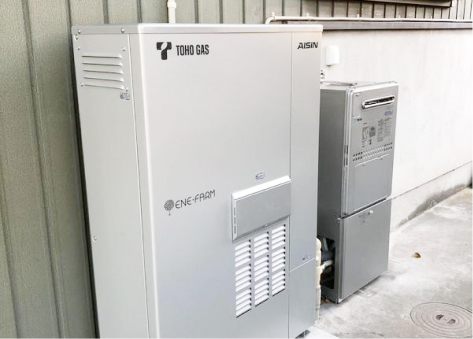 エネファームの設置工事をいたしました。エネファームは効率がよく環境にやさしいうえに、とても経済的なためおすすめです。