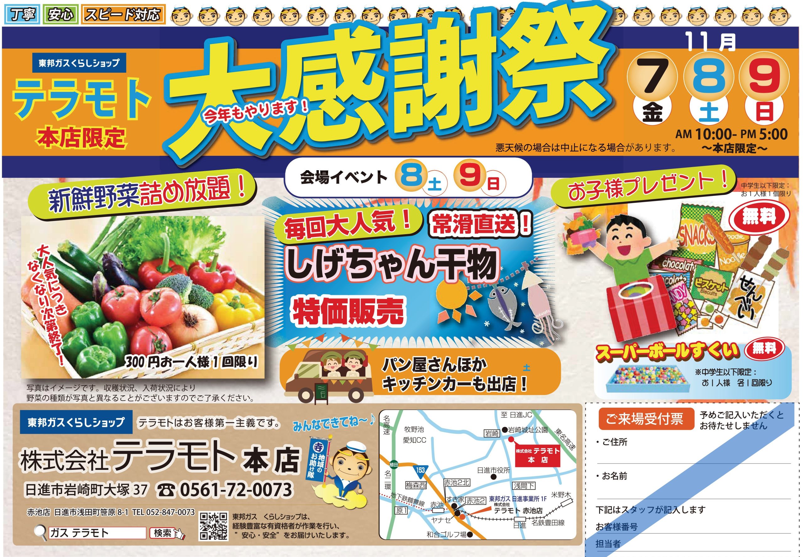 テラモト大感謝祭 11/7(金)~9(日)本店のみにて開催。